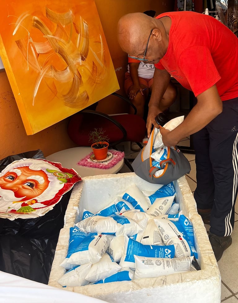 A entrega ocorre semanalmente, e, no total, são destinados 15 litros mensais às famílias cadastradas.